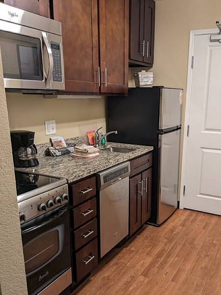 這間 TownePlace Suites 價格比市區飯店親民一些,但品質絕對不打折。乾淨、安靜、設施齊全,還有小廚房可以自己煮,對我們這種喜歡有「生活感」的旅遊方式來說真的很合適。